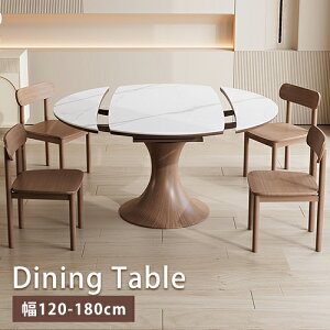 伸縮式ダイニングテーブル 円卓 大理石柄 幅120cm 幅135cm 幅150cm 幅160cm 180cm 丸 伸張 4人 6人 セラミック 食卓 食事 リビング レトロ 天然木 来客対応 アンティーク風...