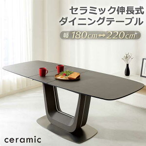 セラミックを使用した高級感あふれるダイニングテーブル。 天板は美しく高級感ただよう石目調のデザインです。 簡単ワンタッチでテーブル幅を変更できる便利な伸長式です。急な来客や大人数にも対応可能です