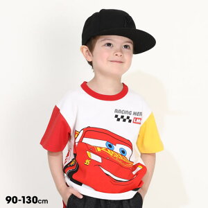 カラフルな袖の配色がポップでかわいいCARSのTシャツ★ ゆったりめのシルエットにインパクト抜群のマックィーンがおしゃれ♪ サラッと着られる天竺素材は吸汗性がよく丈夫だから、デイリー使いにもピッタリ◎ ベビーサイズ キッズ 男の子