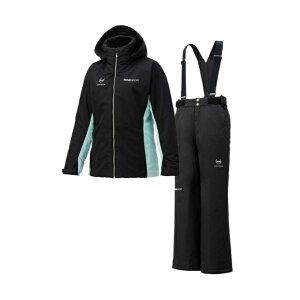 サスペンダーのウエスト取り付け位置が調節可能なラクシングパンツを採用したウィメンズセットアップスーツ。腰と袖のラインがデザインアクセントで、細身に見えるように工夫されたデザイン。畜熱保温素材「HEATNAVI」を採用し、保温性。