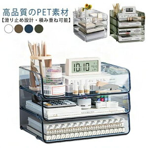 "商品名:四段書類ケース 材質:PET カラー:透明、ホワイト サイズ:横幅31.5cm、奥行24.5cm、高さ約29cm 商品説明: 高品質のPET素材使用、無毒無臭で耐久性に優れています。 資料が増えても積み重ねるだけで簡単に収納...