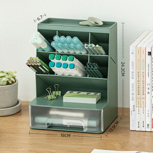 【スペース利用の最大化】このデスクオーガナイザーとアクセサリーには、ペンホルダー収納用のコンパートメントが7つ、トップトレイ1つ、引き出し2つがあります。文房具を置くだけでなく、化粧品・メイクブラシ、リモコン...