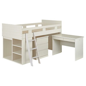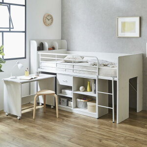 商品について ■商品の特徴 ベッドはシングルのロータイプベッドに変更可能。 デスクはキャスター付きで移動もラクラクです。 便利な棚付きで本や携帯や眼鏡など手軽に置いていただけます。 ベッド奥も便利な収納としてお使いいただけ