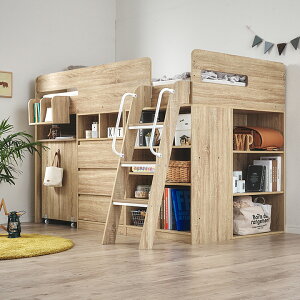 デスク・ワゴンの付いたシステムベッド。ベッド下スペースを有効活用でき、お子様の成長に合わせて様々なレイアウトが可能です。 ■カラー ナチュラル ■サイズ(約) ベッド:幅117×奥行203×高さ120×床面高81cm デスク:幅12...