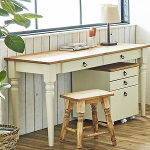 エレガントかつアンティークな印象を与える猫脚を採用した木製のデスクです。 一見、3杯に見える引出しは左右サイズ違いの2杯引きに。