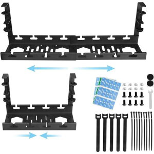 【伸縮可能ケーブルトレー】デスク下ケーブルトレーは55.3cmまで拡張でき、十分なストレージスペースを提供します。24x11cmの電源ボードを2つ同時に置くことができ、ケーブルが整然としており、デスク...