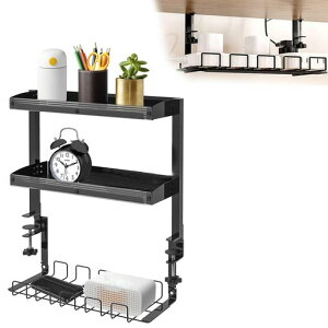 商品情報商品の説明主な仕様 簡単な取り付け:机の下穴あけ不要なデザイン,デスクの天板を挟むことで底部のハンドルを回して簡単に設置できます。brサイズ:幅43×奥行12×高さ15cm、br素材:スチール、優れた耐久性。最大積載質量:5kg、