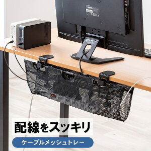 電源タップ、ケーブルを収納でき、デスクに後付ができるケーブルトレー。クランプ式で簡単取り付け。ナイロンメッシュ製でスタイリッシュに目隠しができる。トレーの位置は前後に動かせる。汎用タイプ。<特長>●電源タップとケーブ