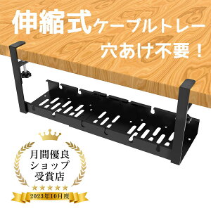 製品名伸縮式ケーブルトレカラーブラック伸縮可能長さ30.5cm〜55cm取り付けは簡単クランプ式デスク ケーブルトレーが新登場!穴あけ不要で天板の厚さが1cm〜5cmのデスクに汎用クランプで締め付けて取り付けてください。デスクの背面などの