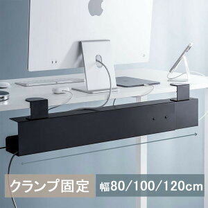 電源タップ、ケーブルを収納でき、デスクに後付ができるケーブルトレー。クランプ式で簡単取り付け。スチール製でスタイリッシュに目隠しができる。横幅を80/100/120cmの3段階に調整できる。スチール製...
