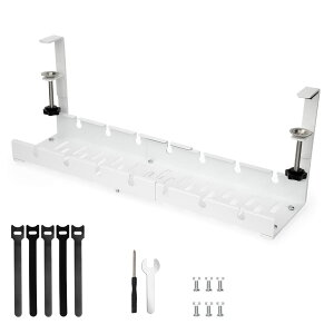 製品名伸縮式ケーブルトレカラーブラック伸縮可能長さ30.5cm〜55cm取り付けは簡単クランプ式デスク ケーブルトレーが新登場!穴あけ不要で天板の厚さが1cm〜5cmのデスクに汎用クランプで締め付けて取り付けてください。デスクの背面などの