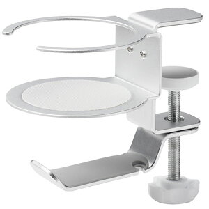 ヘッドホンとドリンクをまとめて収納できる、ドリンクホルダー付きのヘッドホンスタンドです。 ■ヘッドホンのハンガー部は360度回転可能でデスク下に収納できるので、使用したいときだけデスク下からヘッドホンを取り出すことができ