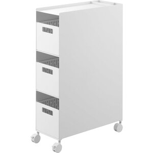 山崎実業 収納バスケットワゴン タワー 3段 10015 10016 はこんな商品です。 1台で多彩な収納。 メインの3段の引き出しバスケットの他、天板・天板ポケット、背面収納など便利な収納が合体した多機能収納ワゴンです...