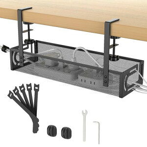 デスク周りをスッキリ整頓!電源コードやUSBケーブルをしっかり固定、配線のごちゃつきを解消します。簡単な取り付け:机の下穴あけ不要なデザインデスクの天板を挟むことで底部のハンドルを回して簡単に設置できます。穴あけや粘着テー