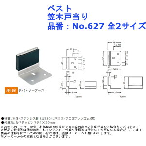 【ベスト 笠木戸当り】 品番:No.627 用途:ラバトリーブース サイズ:25mm、40mm 材質::本体/ステンレス鋼 SUS304、戸当り/クロロプレンゴム(黒) 付属品:なべタッピンネジ 入数:1個 戸締 防犯 トイレ 鍵 取...