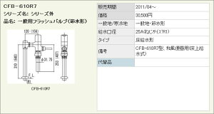 ■一般地/寒冷地: 一般地・節水形■給水口径: 25A(ねじサイズR1)■タイプ: 床給水形■備考: CF-T60型、定流量弁付、C-P13S用、中水用
