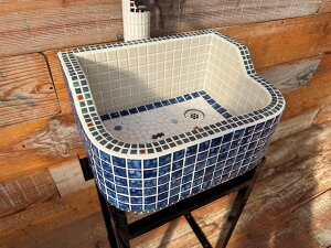 Sサイズ寸法(誤差±30mm) 幅680mm 奥410mm 高さ200mm140mm 重量約28kg (タイル込みの寸法、重量です) 材質 下地モルタル製 タイル磁器質 付属品 排水ソケット 下地の材質はモルタル製 鉄補強材入りです...