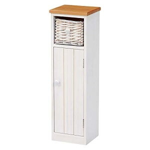 スタイル:シャビーシック◆商品名:萩原 トイレラック トイレ 収納 棚 【完成品】 カゴ付き スリム 開き戸 ホワイト MTR-6437【本体サイズ】:(約)幅19×奥行16×高さ62cm 【バスケッ...