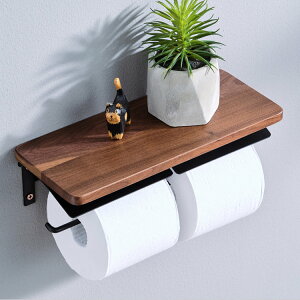 トイレットペーパーホルダー おしゃれ ペーパーホルダー 突板 アイアン風 木製 トイレットペーパー ホルダー トイレ 二連 2連 アンティーク ダブル ウッド スタンド 棚付。