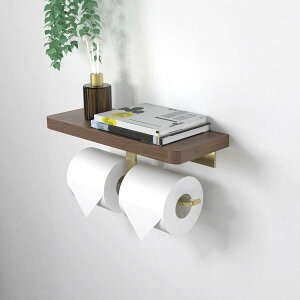 トイレットペーパーホルダー 木製 北欧風 棚付き 2連