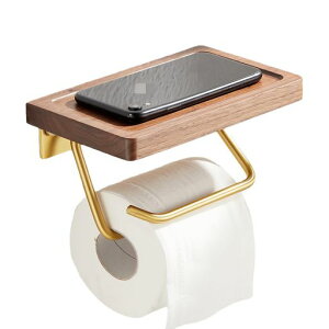 おしゃれなデザイン】木製のトイレットペーパーホルダーはシンプルなデザインで、トイレのインテリアに馴染みます。防錆加工(粉体塗装)された金色のスチールフレームは、上向きのアーチが特徴で、トイレットペーパーを掛けやすく落下