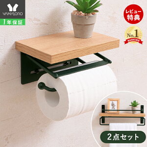 トイレットペーパーホルダー おしゃれ トイレ用品 インテリア 棚付き ダブル 木製 ペーパーストッパー付き キッチンペーパー 洗面所 収納 北欧風 サイズ: (約)幅33cm×奥行11...