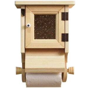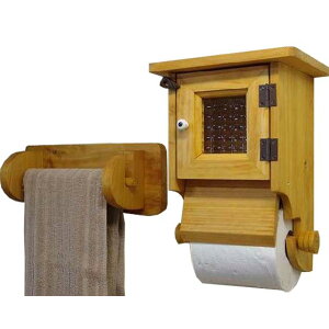 ひのきの無垢材で手作りしたチェッカーガラスのトイレットペーパーホルダーとアンティーク風のタオルハンガーです。 扉のガラスにはチェッカーガラスを入れています。 扉の中には予備のペーパーが1個入るようになっています...