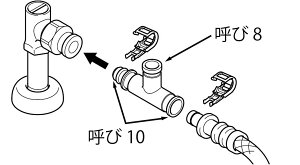 分岐孔付きの給水栓や分水継手に取付け、リターン式浄水器の専用吐水口として使用できます