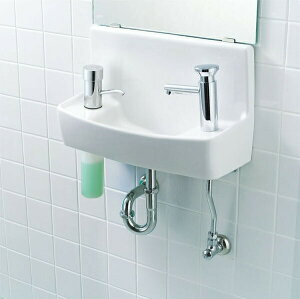 汚れがつきにくいアクアセラミック仕様(Yから始まる品番)狭小手洗器0.4坪の狭小スペースにもぴったりのコンパクト&シンプルなシリーズ。一般的な手洗い取付に必要なものをセットにしています。壁給水・壁排水(Pトラップ)一般地・