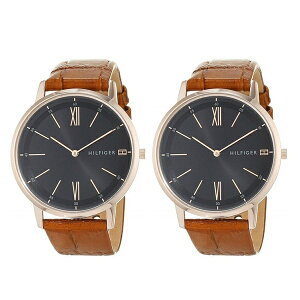【ペア収納ケースつき】トミーヒルフィガー 腕時計 ペアウォッチ ペアルック 黒文字盤 ブラウンレザー 同じサイズ おそろいペア スリム とけい 17915161791516 ペア腕時計ボックス(リングも収納可能)プレゼント中...