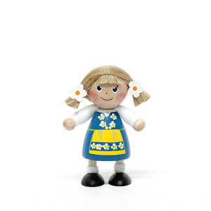 ☆個体によって表情が異なります☆ ☆※画像の個体は目が大きいですが、小さな目の個体も沢山あります☆ ☆スカートの絵付けが6枚目の画像のように変更されています☆ 北欧らしいモチーフのミニ・ドールたち。 木とフェルト素材