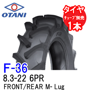 トラクター タイヤ 農業機械用タイヤ 農機用タイヤ AGタイヤ チューブタイプ チューブ別売り トラクター前輪及び後輪用タイヤ タイヤメーカー オータニ/OTANI タイヤブランド F-36 FRONT/REAR M-Lug タイヤサ...