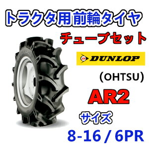 【商品名】 DUNLOP (OHTSU) 住友ゴム トラクタ用 前輪タイヤ 運搬車 / 作業車への使用可能 タイヤ1本 + チューブ1枚 セット 【サイズ】 ■タイヤ■ AR2 8-16 6PR WT 【外径 / 幅 / ...