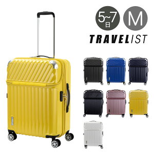 トラベリスト スーツケース TRAVELIST Mサイズ フロントオープン ワンタッチ トップオープン 拡張 軽量 ストッパー スマホスタンド ドリンクホルダー TSAロック 51〜61L 5〜6泊 ファースト M キャリーケース 拡...