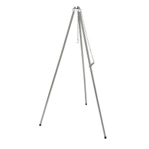 ハイ1m14cm&ロー78cm、2WAYでの使用ができる焚き火三脚。 「ハイ」はファミリーや大人数に、「ロー」はソロに最適です。 吊り下げ位置が自由に変えられる自在チェーン付き。 収納バッグ付き。 素材:脚部・自在金具:ステンレス鋼、チェー