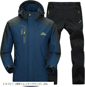 kdjy商品名アウトドアジャケット 上下セット メンズ ウェア 登山服 マウンテンパーカー 多機能 防寒 防風 撥水ブランドBENQUE(ベンケ)カラー1.ネイビー (速乾トレッキングパンツ)サイズ等2XL「上下...