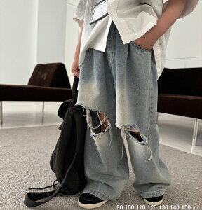 【適用シーン】日常使い、通園通学、部活動、学校行事に対応 、お出かけ、買い物、公園遊び、お誕生日パーティーにもおしゃれなデニム。【魅力的なカラー】製品洗いの風合いが引き立つ、雰囲気のある表情が魅力的のバギージーパン...