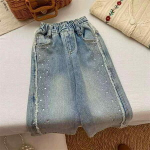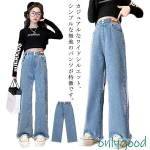 パンツ 子供服 デニム キッズ 女の子 ジーンズ ジーパン ゆったり 子供 可愛い カジュアル おしゃれ 可愛い 薄手 ガールズ 長ズボン ストレート 新品 90 100 110 120 130 140...
