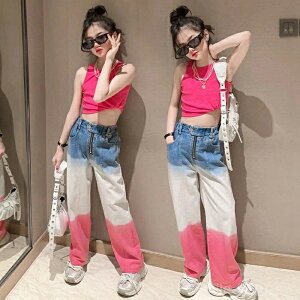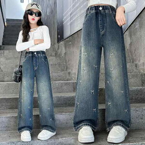 ストレートデニムパンツの定番スタイルで、女の子にぴったりのおしゃれなデザイン。ゆったりとしたワイドシルエットで動きやすく、通園や通学にも適な子供服です。復古調の刺繍と蝶結びのディテールがかわいらしさを引き立てます...
