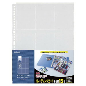 [特長]:■30穴・2穴・3穴・4穴に対応したマルチホールシステムを採用したA4サイズの替台紙。[仕様]:■上入れポケット ■ポケット:トレカサイズ×9ポケット15枚入透明片面収納■リフィルサイズ:タテ302×ヨコ234mm■収納可能...
