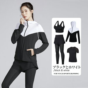 ヨガウェア レディース スポーツウェア 4点セット トレーニングウェア スポーツブラ レディース 揺れない ブラジャー スポーツブラジャー しっかりサポート ヨガブラ 上下セット ジャージ おしゃれ ホットヨガ...
