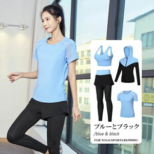 ヨガウェア【素材】77%ポリエステル, 23%スパンデックス【セット】4点セット【サイズ】M-2XL【カラー】ブラック、ブルー*ブラック、ホワイト*ブラック、上ブルー*下ブラック、上ピンク*下ブラック...