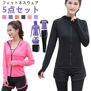 フィットネスウェア5点セットこれさえあれば、近所でのジョギングはもちろん、スポーツジムやヨガスタジオでもお洒落にフィットネスコーデを楽しめます♪ブラトップはアンダーゴム入りで程よいフィット感。パーカーはややゆったりめ体