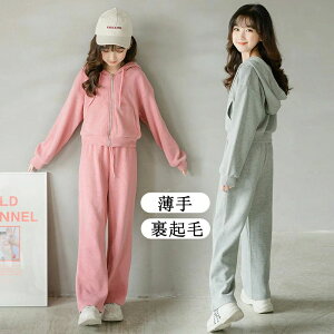 2点セット ジャージセット パーカー フード付き ワイドパンツ 長袖 春秋 子供服 女の子 キッズ 上下セット トレーニングウェア スポーツウェア ランニングウェア スウェット 無地 カジュアル スポーツ...