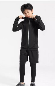 運動後もサラッとした肌触りを維持。適度な圧着感で筋肉をサポート!成長期のお子様の運動パフォーマンス向上に。 長袖コンプレッショントップスとスポーツタイツ 2点セット。UVカット、吸汗速乾、防寒保温、通気などの多機能を備え...