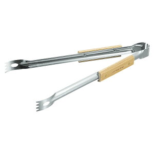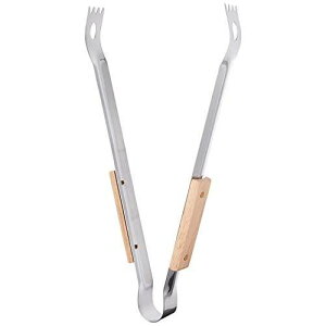 【商品説明】 持ち手が木材のお洒落なバーベキュートングです。 先端が設置面につかない凸起形状で直置きが可能です。 丈夫なステンレス製で耐久性が抜群のアイテムです。 BBQシーン以外でも、自宅での焼肉や...