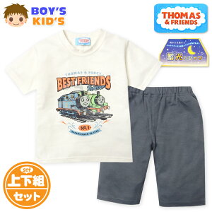 パンツは爽やかな ハーフ丈♪通気性のよいメッシュ素 材が涼しい着心地で快適です◎ 特長 ・きかんしゃトーマス ・半袖光るパジャマ ・上