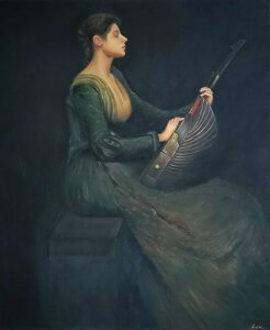 絵画サイズはF12号(50x61cm)、油彩額付(額指定)。 額縁見本は、カテゴリーの額縁見本をご覧下さい。 トーマス・ウィルマー・デェウイング(Thomas Wilmer Dewing 1851〜1938) アメリカ印象派の画...