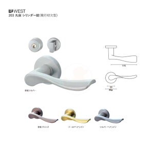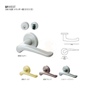 WEST レバーハンドル 160A-A5509。シリンダー錠(外鍵穴/内ツマミ)。付属キー本数 室内用ギザキー 3本。対応扉厚[DT] 30mm〜40mm。