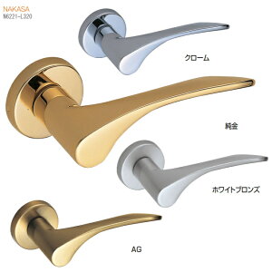 レバーハンドルの詳細 ■材質:亜鉛合金 ■仕上:(純金)(クローム)(ホワイトブロンズ)(AGアンティークゴールド) ■丸座付 ■錠タイプ:標準空錠・チューブラ空錠・表示錠・間仕切錠 ※長座・シリンダー錠にできる場合もあります